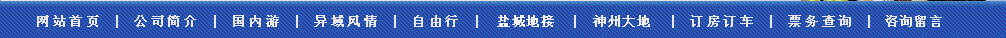 江苏省三星级旅行社(盐城首批) 盐城市十佳旅行社 盐城市诚信旅行社 盐城旅游研学分会会长单位欢迎您!!! 0515--88880819 88290168 专业地接,专业从事组织、接待旅游团队和商务散客的国内旅游、特色旅游、会议服务、研学旅游、奖励旅游、拓展培训、商务预订等。